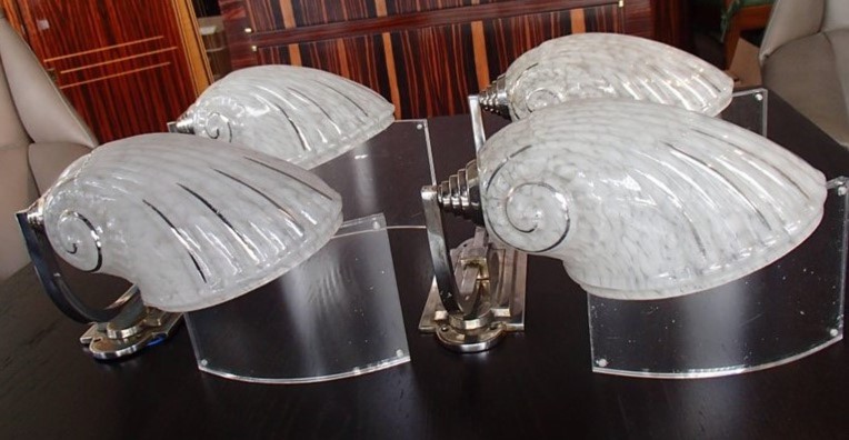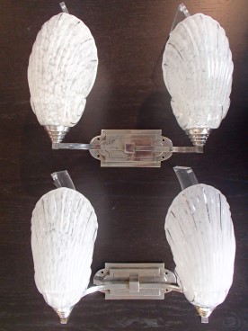 Wandlampen Chromstahl und Opalinglasmuscheln