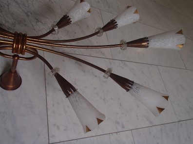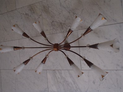Deckenlampe mit Paar Appliquen, Kupfer mit 10 Gläser