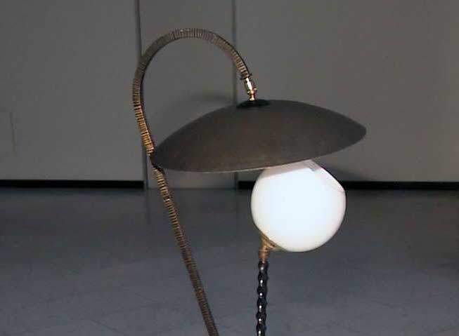 Stehlampe, Schmiedeisen mit weisser Glaskugel