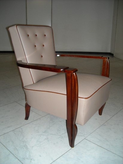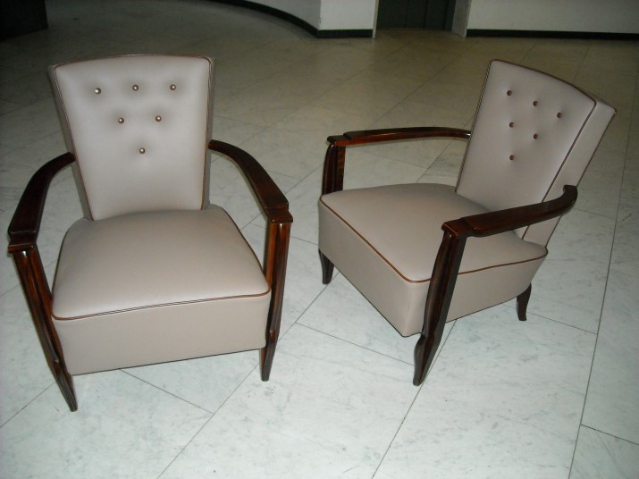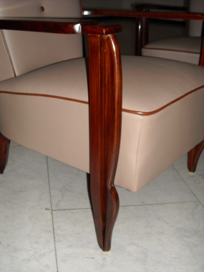 Paar Sessel Armlehen Palisander, neu aufgepolstert und mit Leder bezogen.