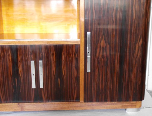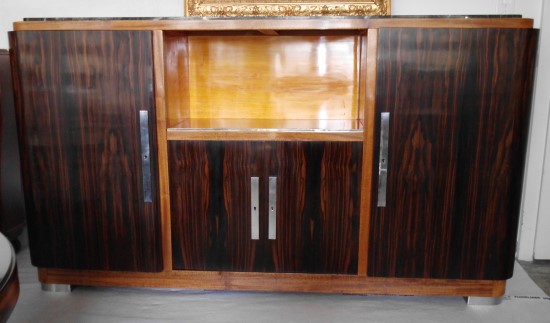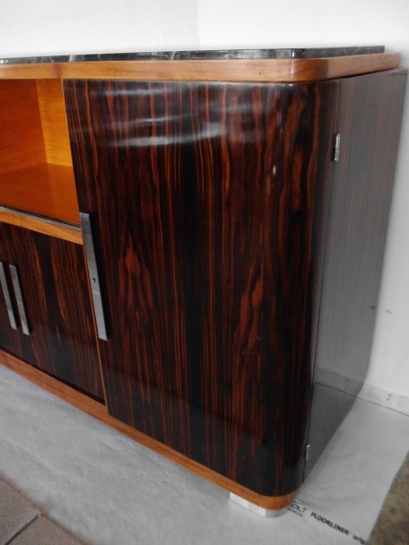 Sideboard Mahagoni und Ebene de Macassar furniert grossen Chromtürgriffen mit graugrün melierter Marmorplatte Frankreich 30er Jahre |