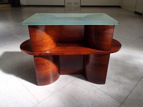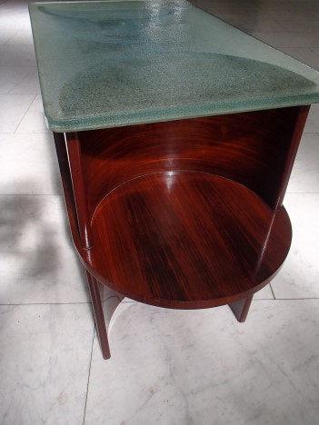 Salontisch oder Konzole Palisander mit dicker grünlicher Glasplatte