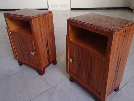 SPaar Beistelltische Apfelbaumfurnier mit Marmorplatte
