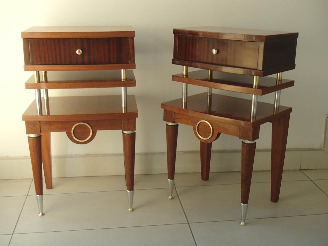 Paar Mahagoni Nacht- oder Beistelltische mit Messingverzierungen