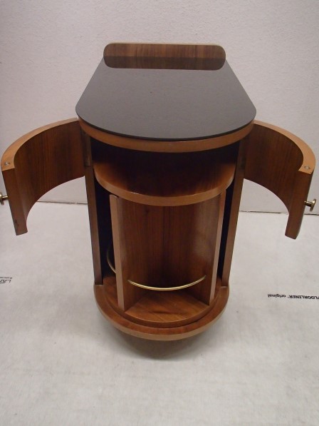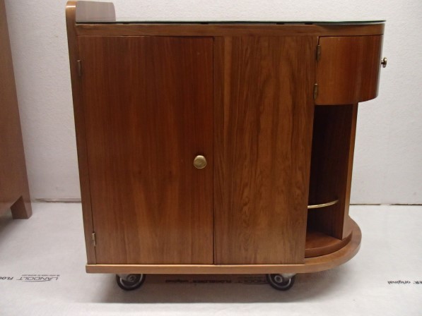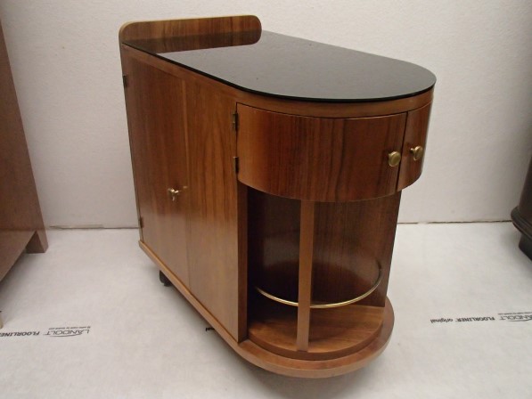 Servierwagen Nussbaum mit schwarzer Glasplatte drehbarer Flaschenteil