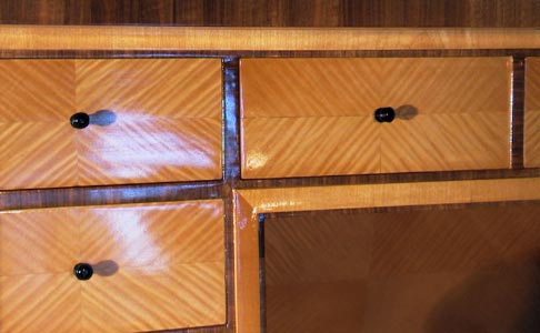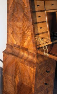 Sekretär, Nussbaumwurzelmaserfurnier, innen Birke, neue Ledereinlage