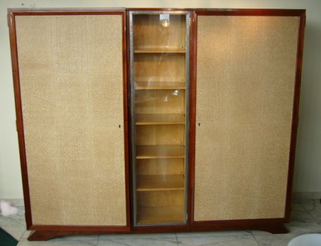 Kleiderschrank Mahagoni mit Fischhaut bezogen in der Mittelture verglast mit Schmiedeisenrahmen Frankreich 20er Jahre |