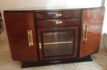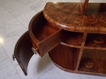 Sideboard oder Barmöbel wildes Nussbaum Wurzelmaser mit Schublade und Türe geschwungen. Aus Villa Am Zürichberg Einzelanfertigung