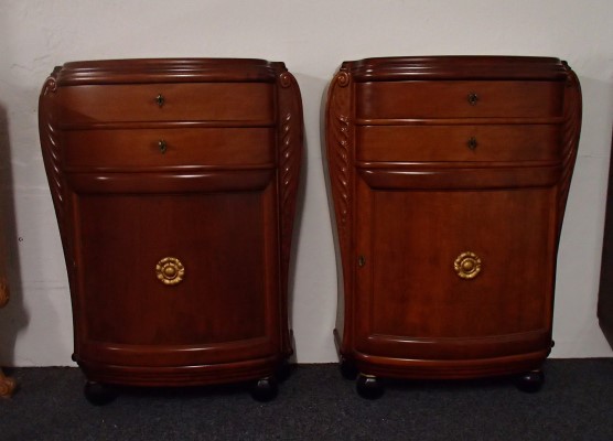 Paar Sideboards Nussbaum mit goldenen Verziehrungen mit je 2 verschliessbaren Schubladen