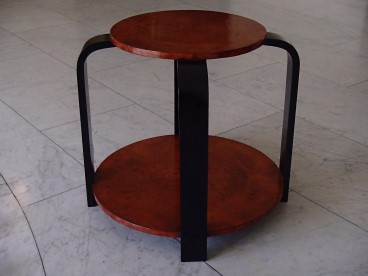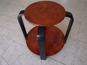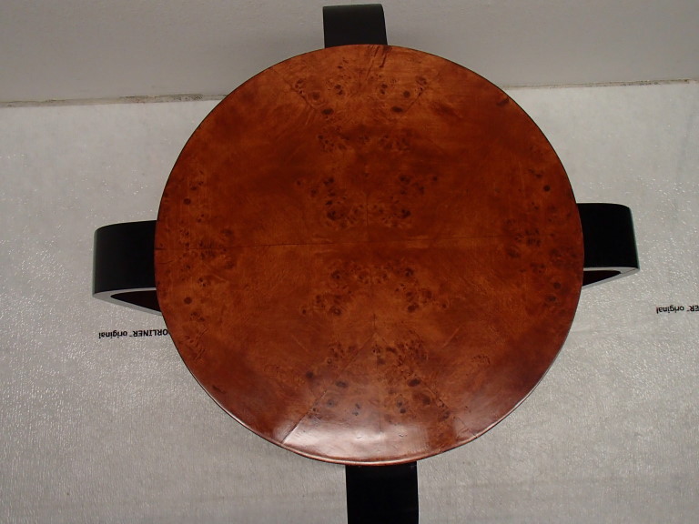 Salontisch schwarz gebeizte Füsse Platte Vogelaugenahorn