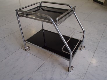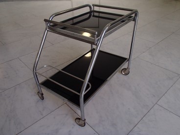 Chromstahl Servierboy mit schwarzen Glasplatten