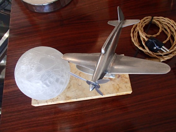 Flieger mit Propeller auf Marmorsockel mit Lampe